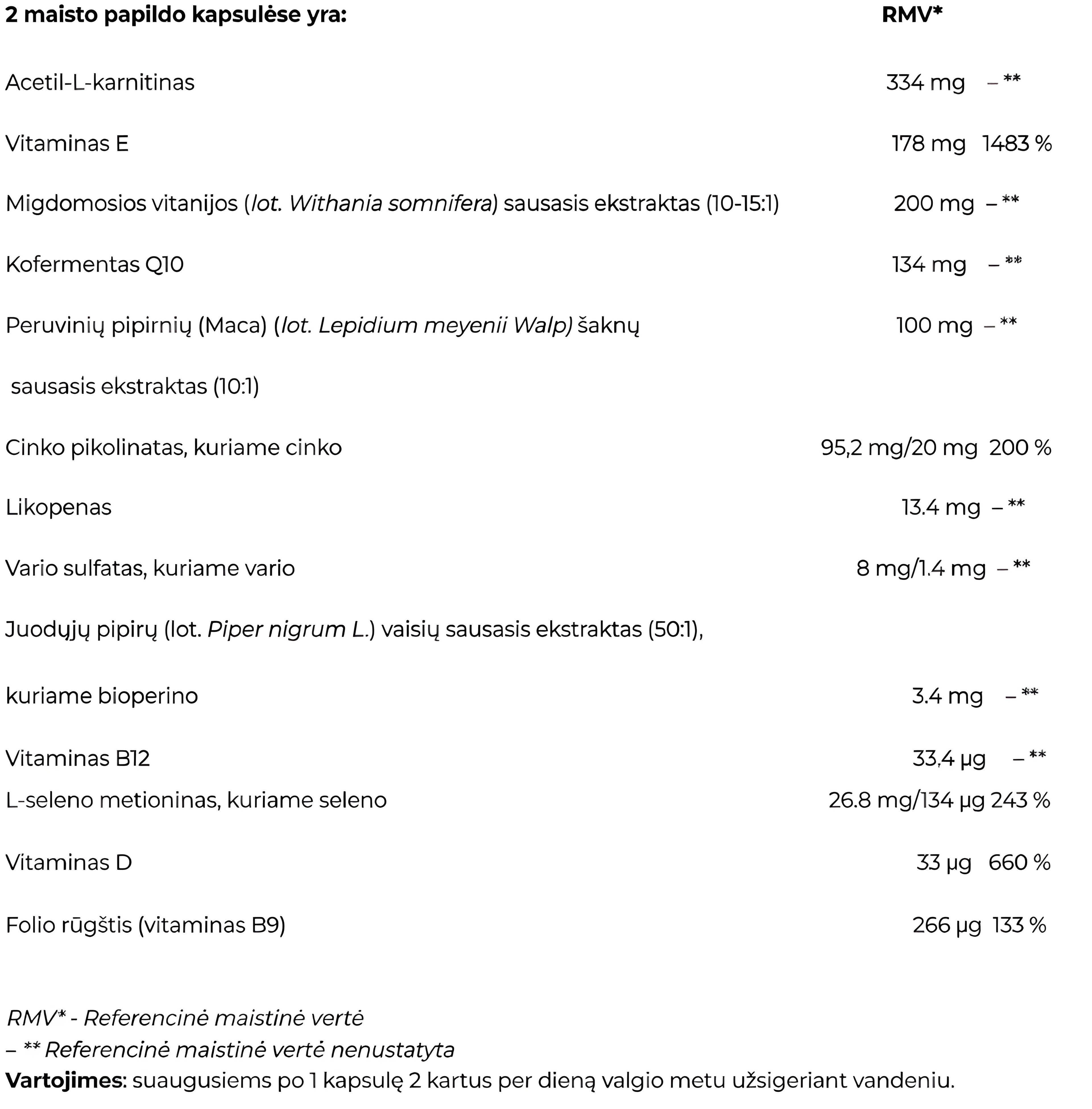Poveikis: Stiprus antioksidantas, kliniškai patvirtintas kaip priemonė vaisingumui didinti (gerina spermatozoidų koncentraciją ir morfologiją)